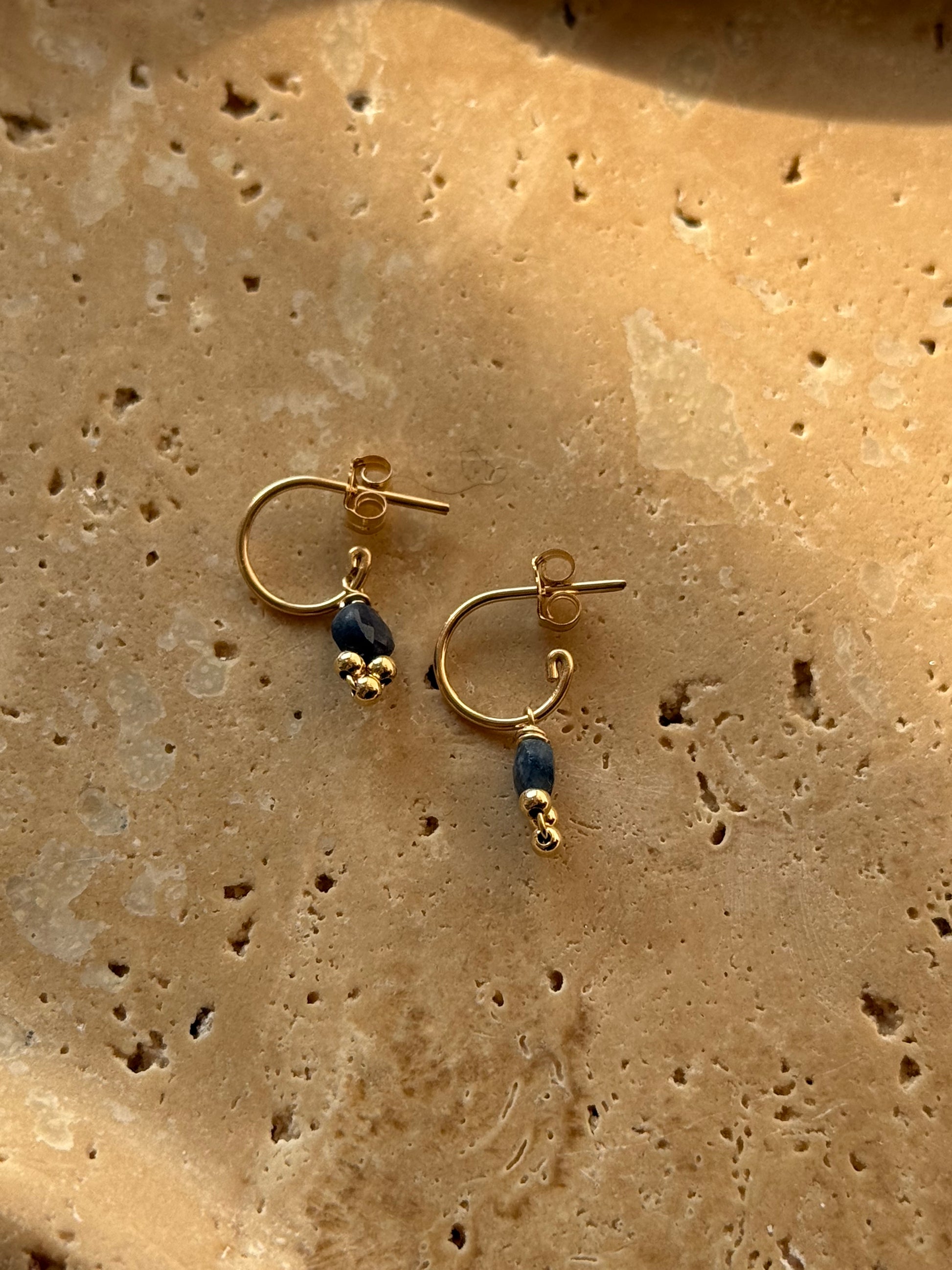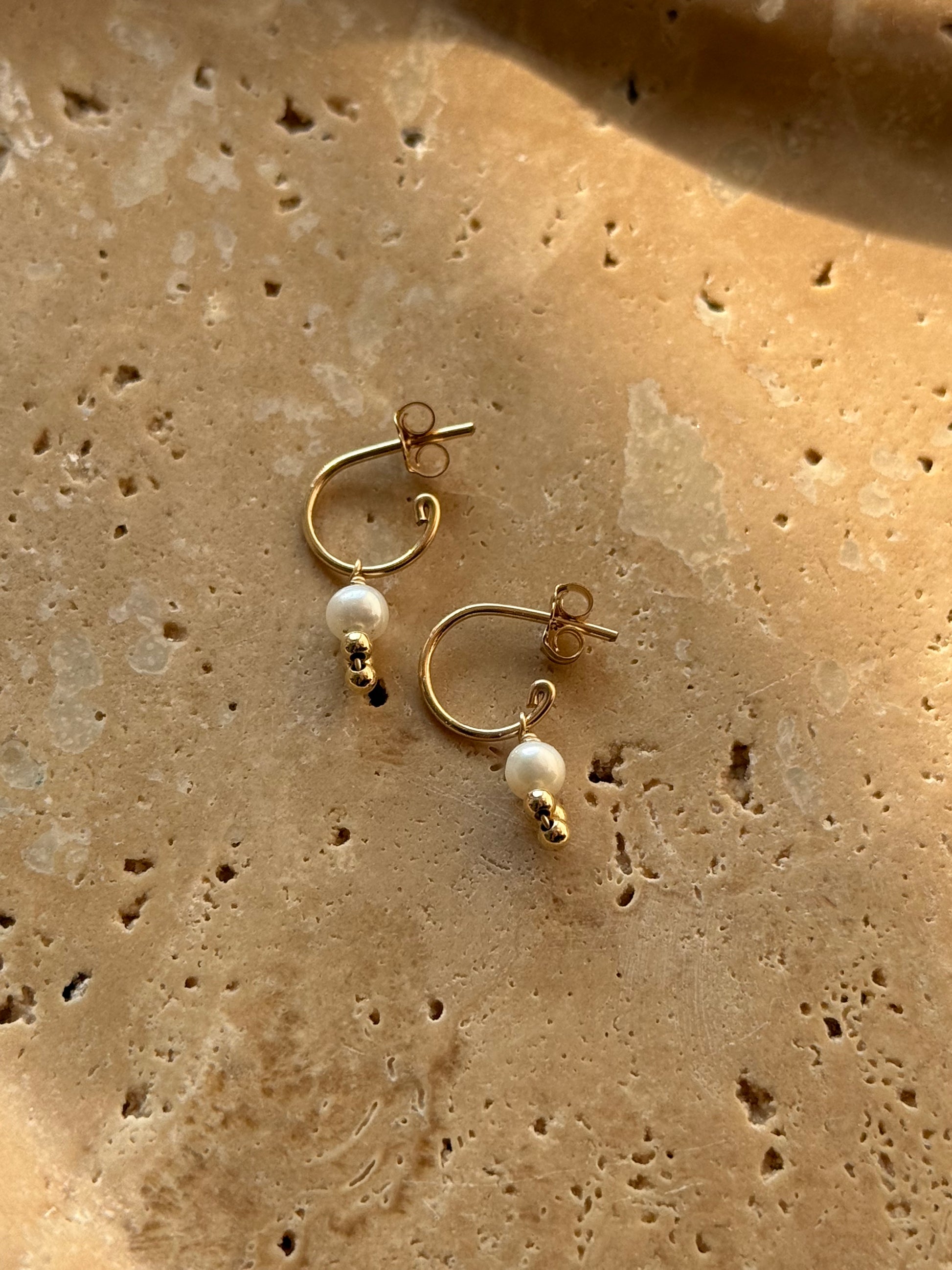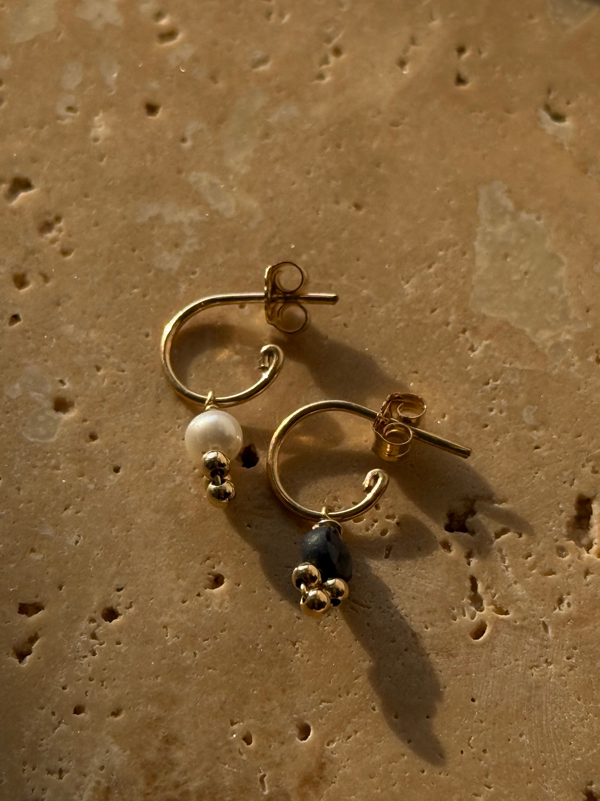 Les créoles Gaïa sont composées d’un pendentif avec une pierre naturelle ou d’une perle de culture et trois petites perles dorées fixes.
